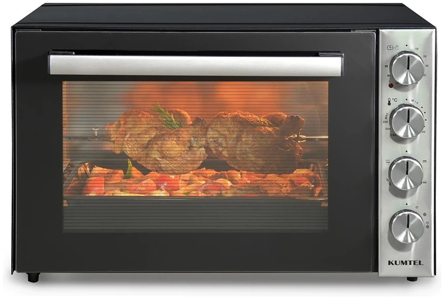 Cuptor electric Kumtel LX-9645FA Pizza & Rotisor XXL, 70 litri, 2500 W, Rotisor, Convectie, 7 moduri de gatit, geam dublu, negru/inox